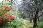 Le jardin est implanté sur une ancienne oliveraie. Restanques, petits escaliers intégrés dans les murs, arbres fruitiers, arbustes, vivaces, rosiers.