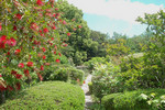 An expanding collection of individual gardens within an old olive grove: spring meadow terraces, bamboo garden, red garden, succulents and woodland walk.