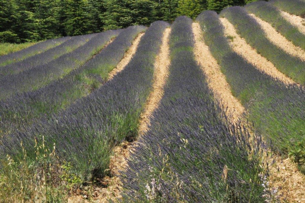 Champs de romarin, lavande, sarriette, origan, sauge et thym, sans irrigation, créé par Paula Marty.