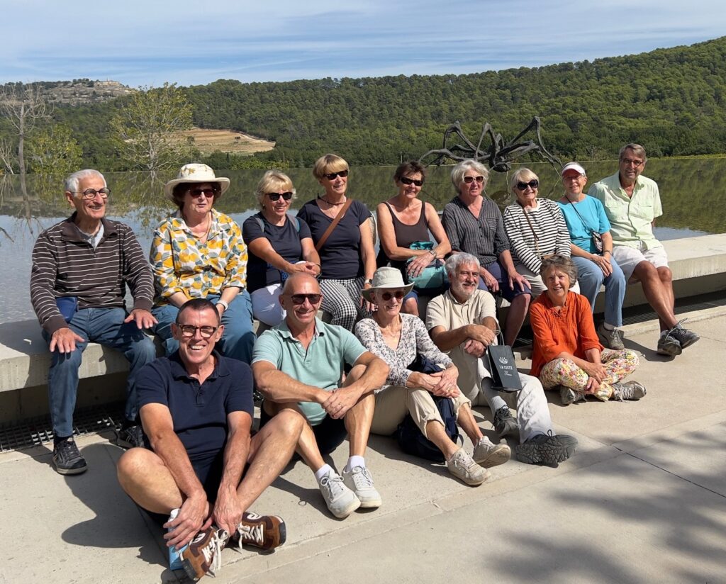 Le 12 septembre, par une journée magnifiquement ensoleillée et chaude, les membres se sont rencontrés pour un pique-nique sur la colline du Domaine de La Quille surplombant les vastes vignobles du Château La Coste. Nous avons dégusté nos paniers-repas, nos biscuits faits maison et notre café avant de nous rendre à la rencontre des autres participants au bord de la pièce d’eau située à côté du bâtiment des arts Tadao Ando.
