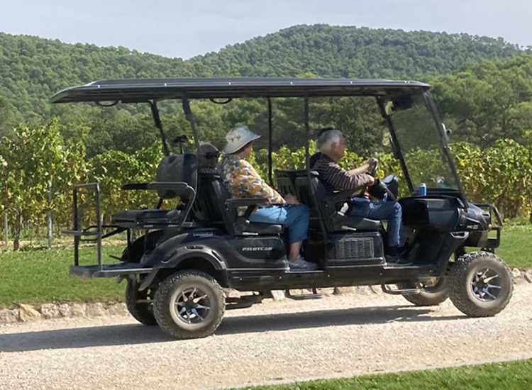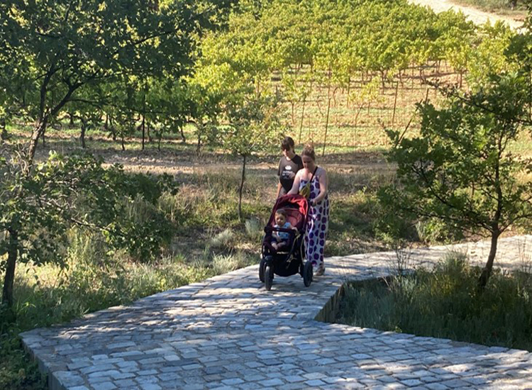 Two guides had been booked to take us around the domain: Iulia leading the walking group of 13 and Melissa driving a golf buggy for three members.  Our youngest member, an adorable and very easygoing 9 month-old, had his own private buggy, valiantly pushed by his mother!
