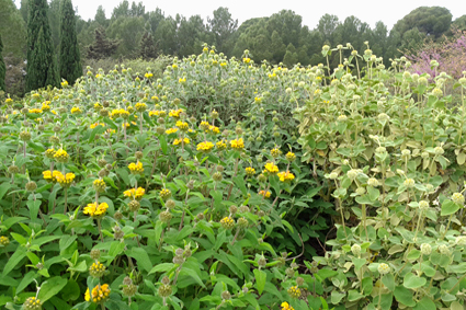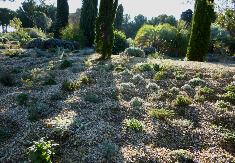 At his nursery near Mèze where he has a large collection of Mediterranean species, Olivier Filippi is making a study of allelopathic plants. On a recent visit, Olivier showed me the new ‘observation’ bed in the experimental garden, where he is studying how allelopathy may be useful for natural weed control in both private gardens and public planted spaces. He has chosen a number of species considered to be allelopathic and will be monitoring their behaviour over the next few seasons. Neither watering (except for initial establishment of the plants) nor mulching with gravel will be carried out, to provide the most natural growth conditions possible.