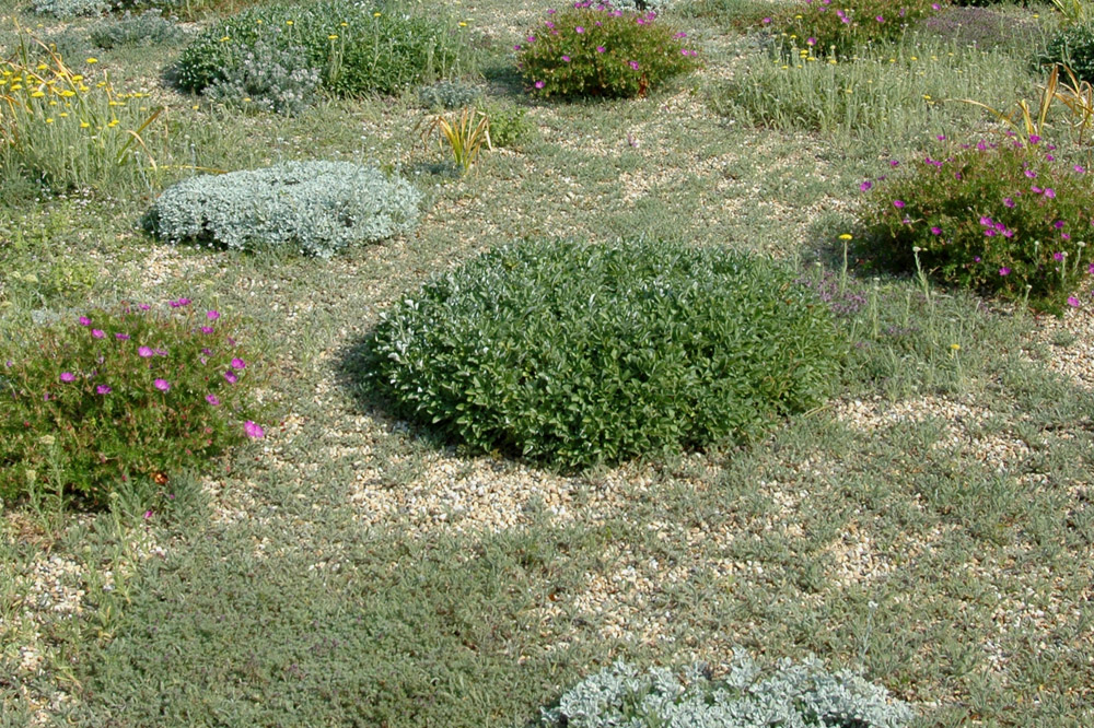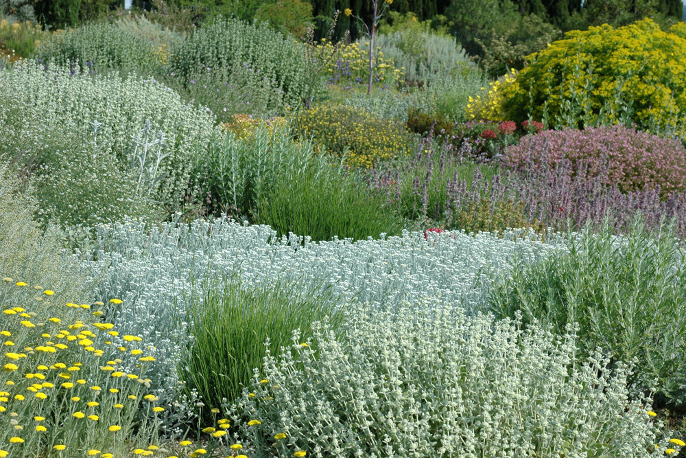Here Ballota acetabulosa in the foreground, Achillea clypeolata (left) and a silver river of Tanacetum densum subsp. amanii interweave naturally to create a dense carpet of plants.