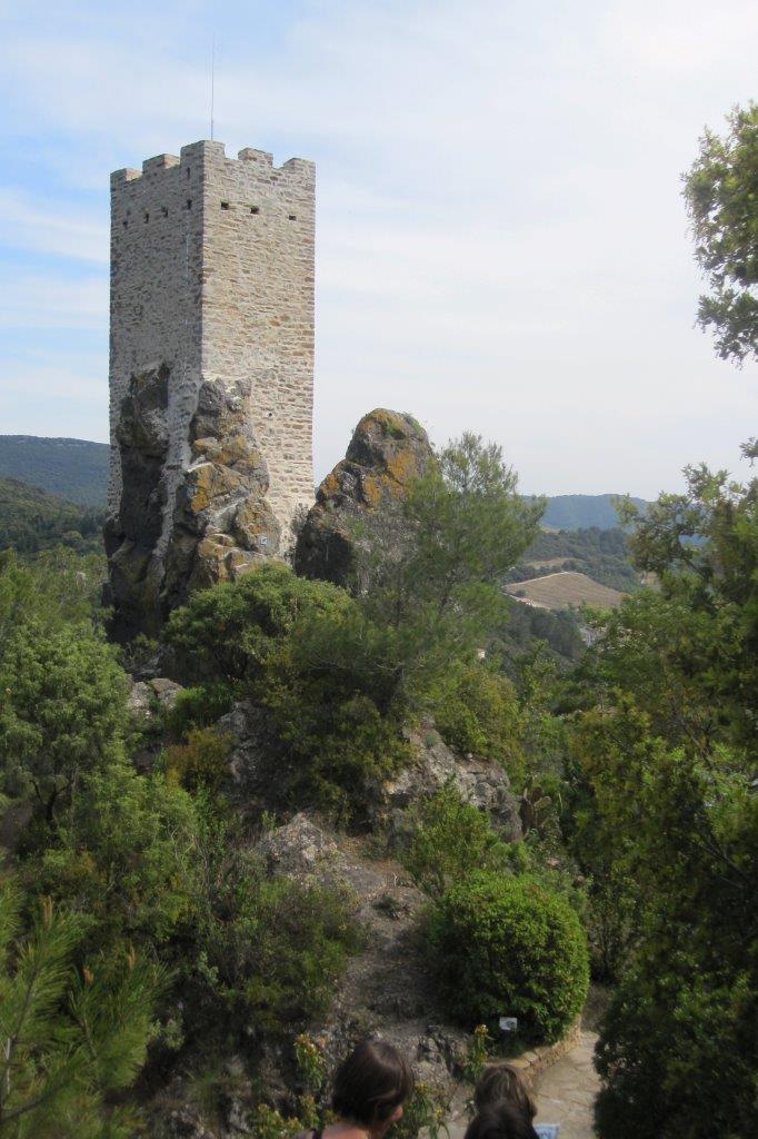 Le Jardin Méditerranéen de Roquebrun is a garden run by an association, CADE (Collectif Agricole pour le Développement et l’Environnement) which has as a number of objectives including the preservation of endangered species and research into aromatic and medicinal plants. The association took on the site in1988 after it had been abandoned for over a hundred years. Dominated by a Carolingian tower, the garden is on a south-facing cliff overlooking the river Orb. It is protected from the Tramontane wind by dolomitic hills and benefits from a micro-climate which enables many exotic plants to grow.