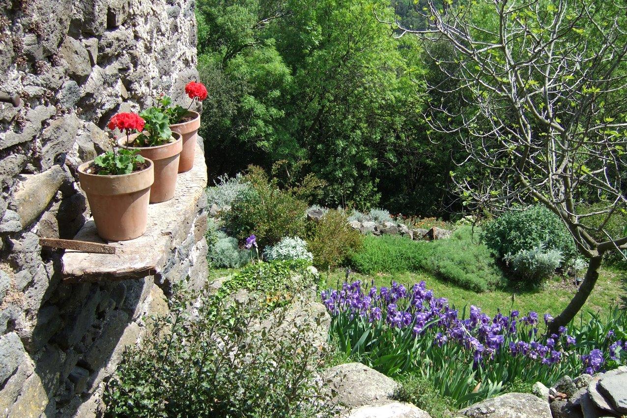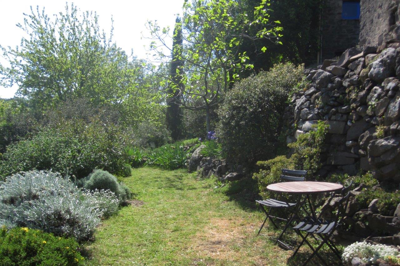Jenny’s garden was a wonderful contrast to Roquebrun; flat, walled and curvaceous with a backdrop of cypress to the north-east, terraced limestone hills to the north-west and an open vista to the south-west. The house, with a terrace running its length, looks out over the garden. In this garden the Orb valley soil is heavy clay except for a newly created raised bed.