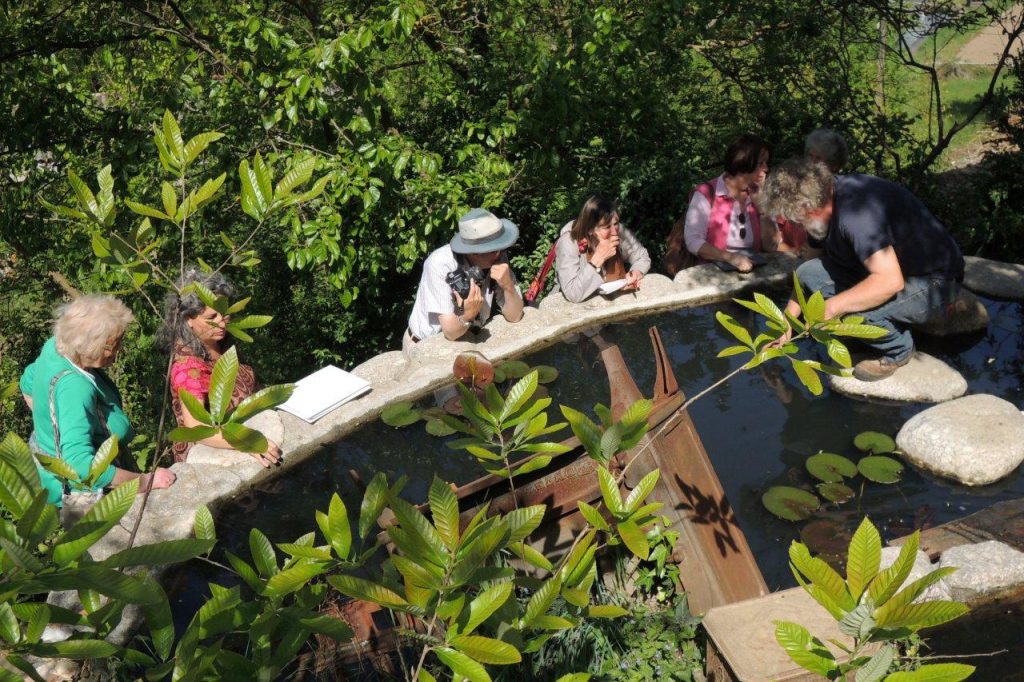 We gathered at the garden on a beautiful sunny April morning, a wonderful time to be there, as the plants were freshly green and soft and not yet roasted by the summer sun. Some members had enjoyed an overnight stay, while others had the pleasure of driving deep into the volcanic terrain of the Cévennes to this unusual venue.