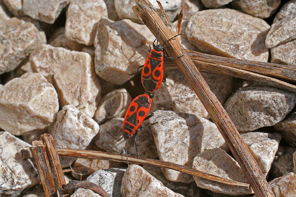 And Fire? Over lunch Christine described to us James Basson’s award-winning garden ‘After the Fire’ – but that doesn’t really count. However, in the afternoon, as we trudged our way up the hill to see the ‘Eau des Collines’, our path was crossed by dozens of pyrrhocoris apterus, what the French call ‘gendarmes’ and the English: ‘fire bugs’. Many were conjoined, the unlucky spouse being obliged to trundle over the stony terrain backwards.