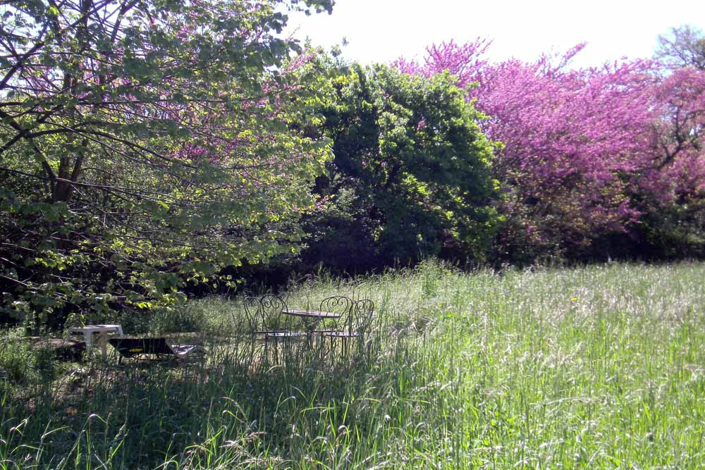 A meadow bordered by Judas trees
