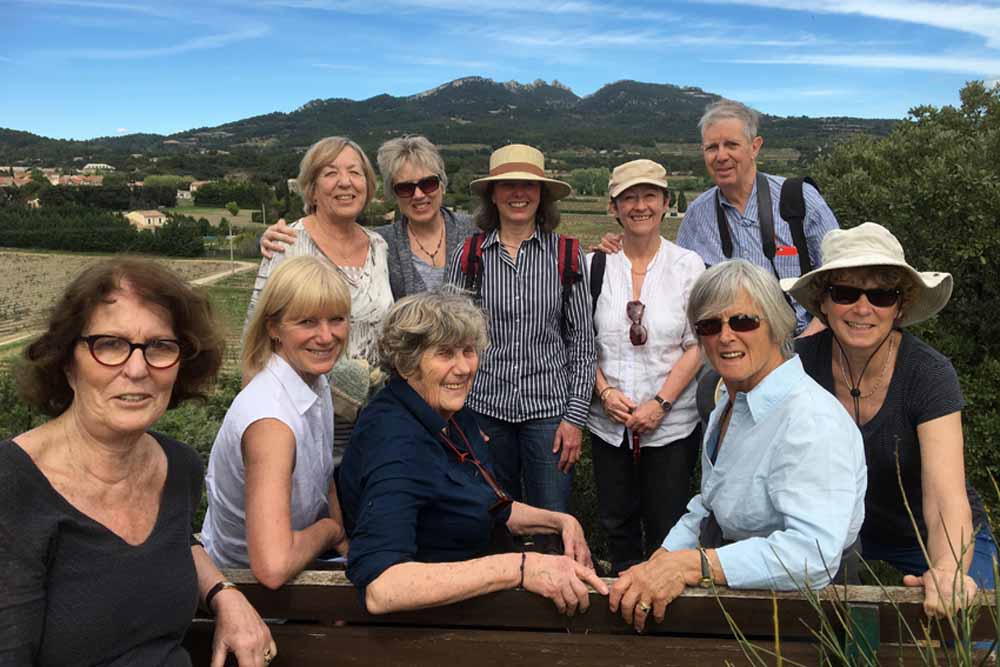 After lunch we drove to Vacqueyras to walk along some of the trails in the Espace Botanique de Coste de Coa, led by Babeth Tomlinson, Chantal’s cousin. It is a lovely site on a promontory, looking out over vineyards to Mont Ventoux and the Dentelles de Montmirail. Although a lot of the name panels were missing, we had fun identifying plants with the help of communally informed guesses, backed up by books. The terrain is garrigue, with open areas between patches of forest, and all the plants were Mediterranean. It was a pleasure to be strolling in warm sunshine accompanied by many varieties of butterfly.