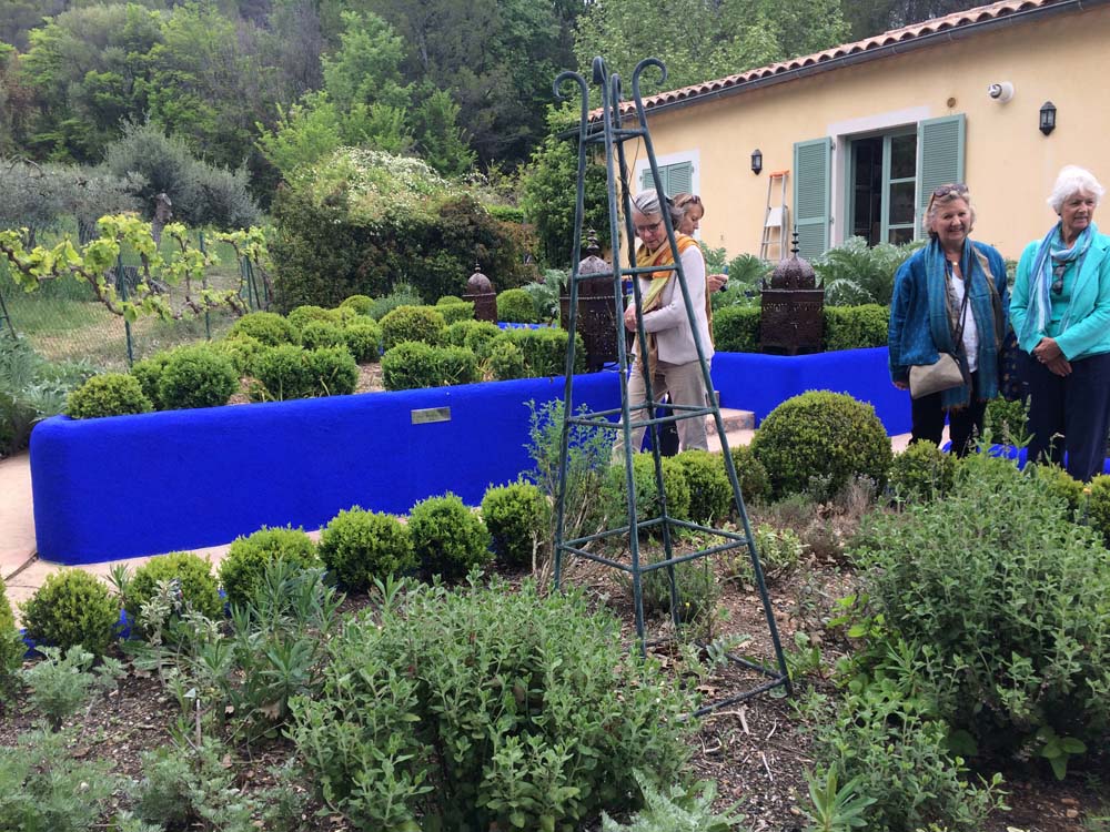 On arrival at the garden we entered into an Yves St Laurent style, Moroccan-inspired, blue-walled parterre, then on to the shady terrace.