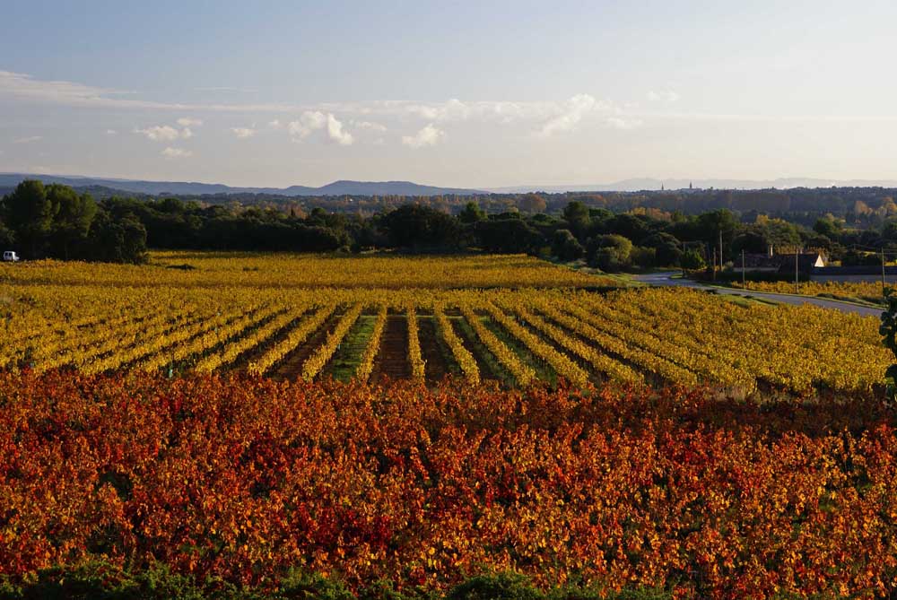 I agree with David that we don’t talk enough about the beauty of autumn leaves and berries in Mediterranean France. The countryside in the Vaucluse glows in November as the leaves on the vines go through their colour changes. The photograph at the top of this article, taken by Guy Cheeseman, is the view from his terrace with the spires of Carpentras and the Montagne du Lubéron in the background.