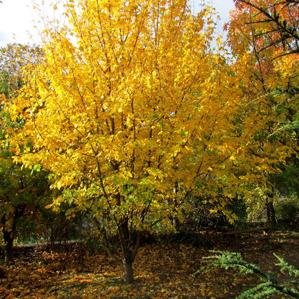 Des arbres et arbustes à feuilles caduques qui se parent de couleur automnale dans mon jardin en ce moment : Acer monspessulanum, Acer campestre, Amelanchier canadensis, Pistacia terebinthus, Sorbus domestica et Abelia x grandiflora.