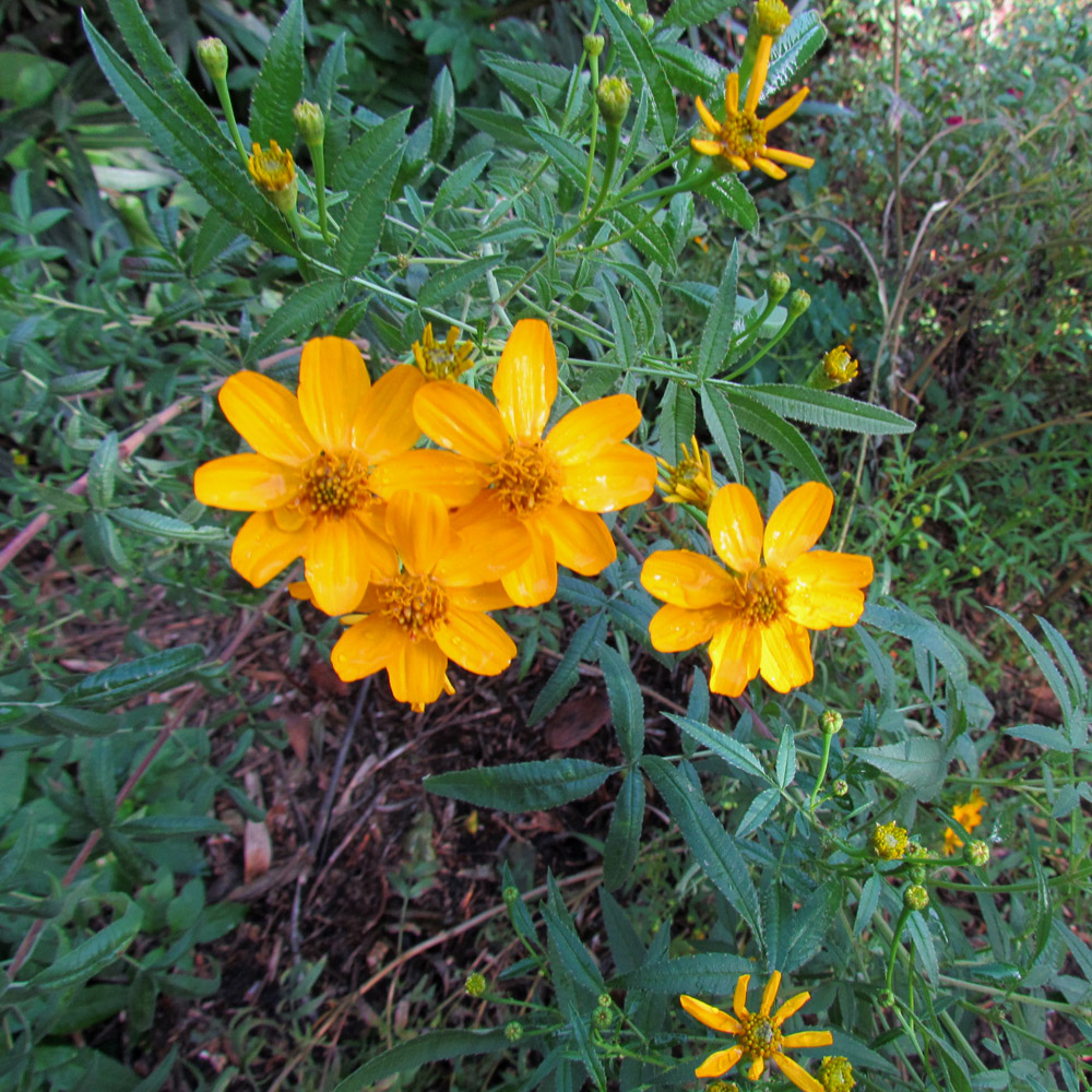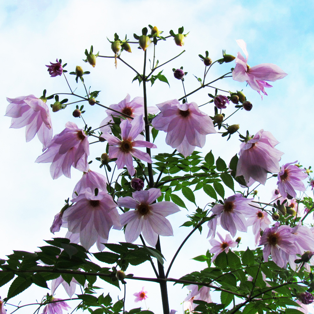 Des couleurs automnales proviennent également de plantes telles que les sauges, toujours en fleurs après une longue floraison, et Tagetes lemmonii et Dahlia imperialis, qui commencent à fleurir en novembre et continuent jusqu’aux premières gelées sévères. Après il nous restera les fruits et les baies et en plus les plantes qui s’épanouissent en hiver, comme le Clematis cirrhosa.
