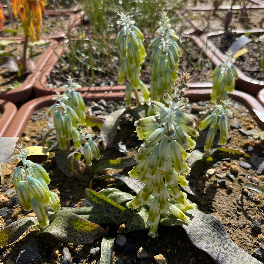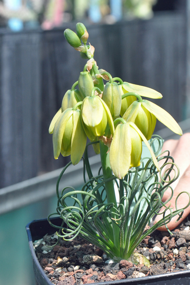 Cette visite était basée sur la collection de géophytes, cultivée avec soin en rangées étroites de grands pots carrés, abrités par de vieilles briques plates provenant d’un mur écroulé de la propriété.