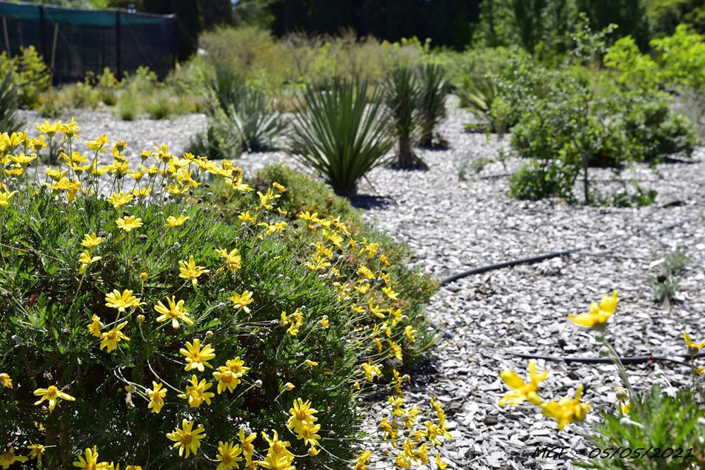 Le troisième jardin d’expérimentation a été développé pour les biotopes de type chaparral / garrigue de basse altitude de quatre continents. Dans ce jardin, nous avons utilisé un substrat différent avec 60% de pouzzolane. Après deux ans les résultats sont aussi bons que ceux du premier jardin et cela permet une meilleure consistance du sol lors de la replantation. Nous y testons de plus en plus d’associations végétales.
