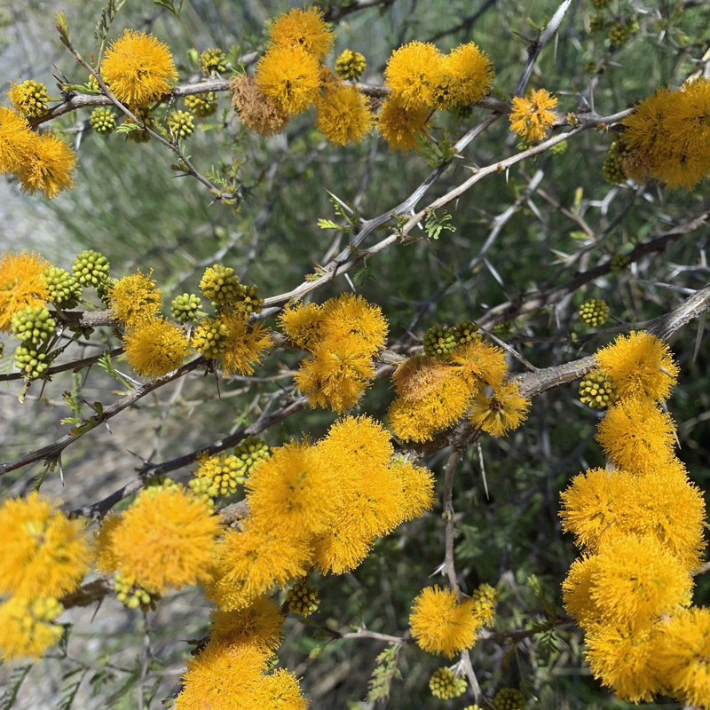 Ensuite, nous nous sommes promenés dans les jardins expérimentaux mis en place pour voir comment les plantes s’adaptent à différents types de conditions de croissance. La forêt d’eucalyptus devient plus mature et les plantes de sous-bois sont maintenant testées. Les fritillaires jaunes semblaient à l’aise dans leurs positionnements, tout comme l’Anthyllis barba-jovis et le Taxandria juniperina.