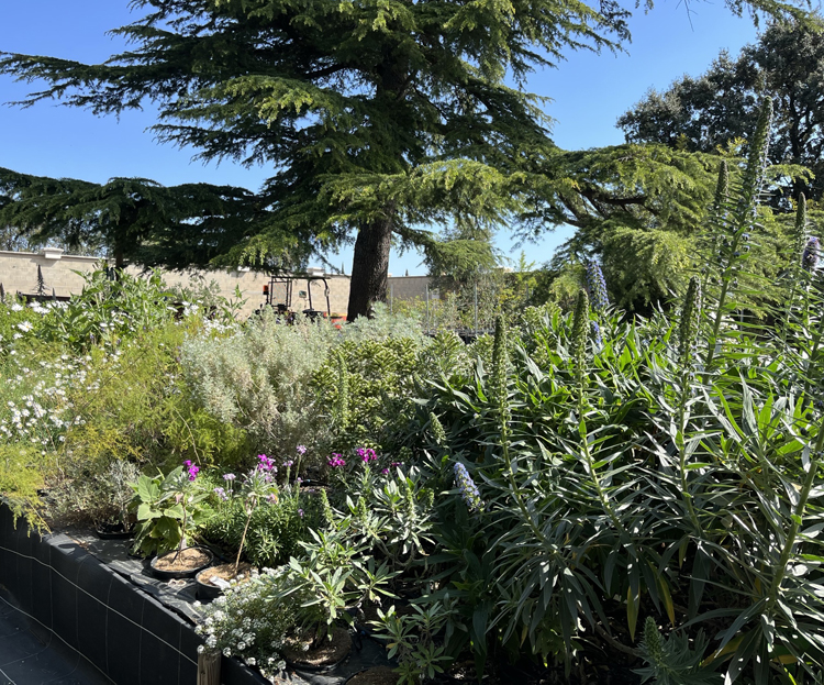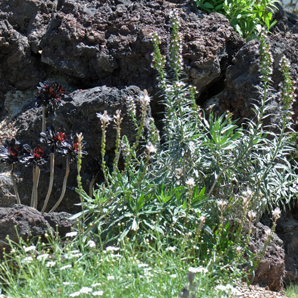 A proximité, se trouvent des parterres où sont testées des plantes provenant de différentes zones climatiques. Les échiums commençaient à fleurir dans le parterre des îles Canaries et la Salvia roscida, originaire du Mexique, était en pleine floraison.