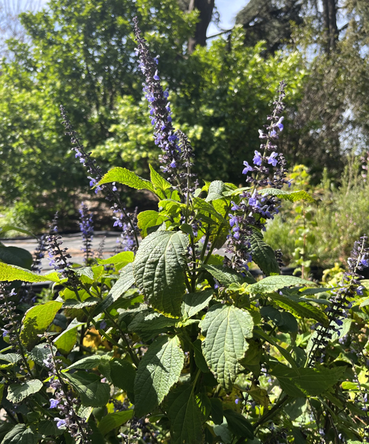 Nearby are some beds where plants from different climate zones are being tried out. Echiums were coming into flower in the Canary Islands bed and the early-flowering Salvia roscida, from Mexico, was in full bloom.