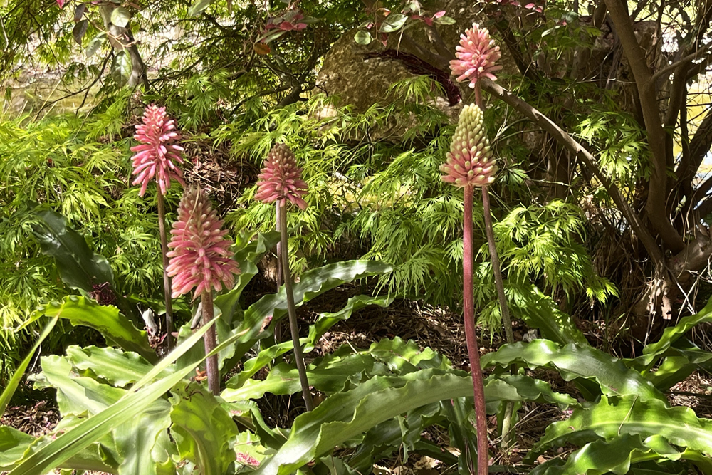 Finally, the River Garden, wonderfully landscaped and full of mature plants, a beautiful area which provides a home for wildlife as well as plants. In particular, the deep pink flowers of Loropetalum chinense with an under planting of Veltheimia bracteata were much admired.