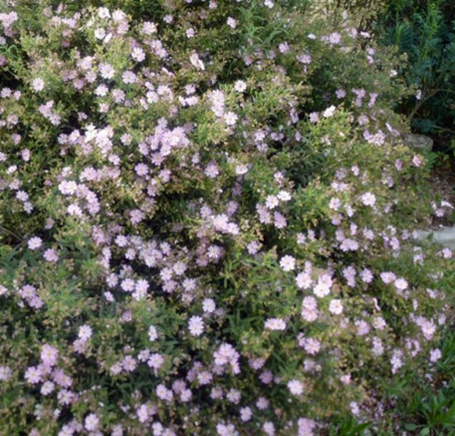 C’est une boule aplatie, hauteur 40 cm x largeur 60 cm aux fleurs rose vif éclatant (mai-juin) ; tolère un peu de calcaire.