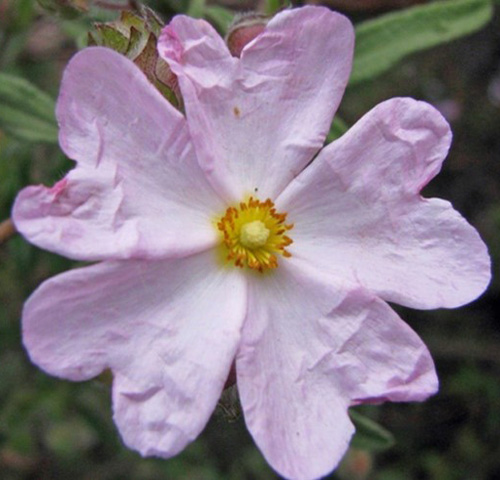 This is the cistus of the garrigue. Its downy grey-green leaves highlight the light pink flowers. Grows to 1 m x 1 m. Blooms early in April. Withstands alkaline soils.
