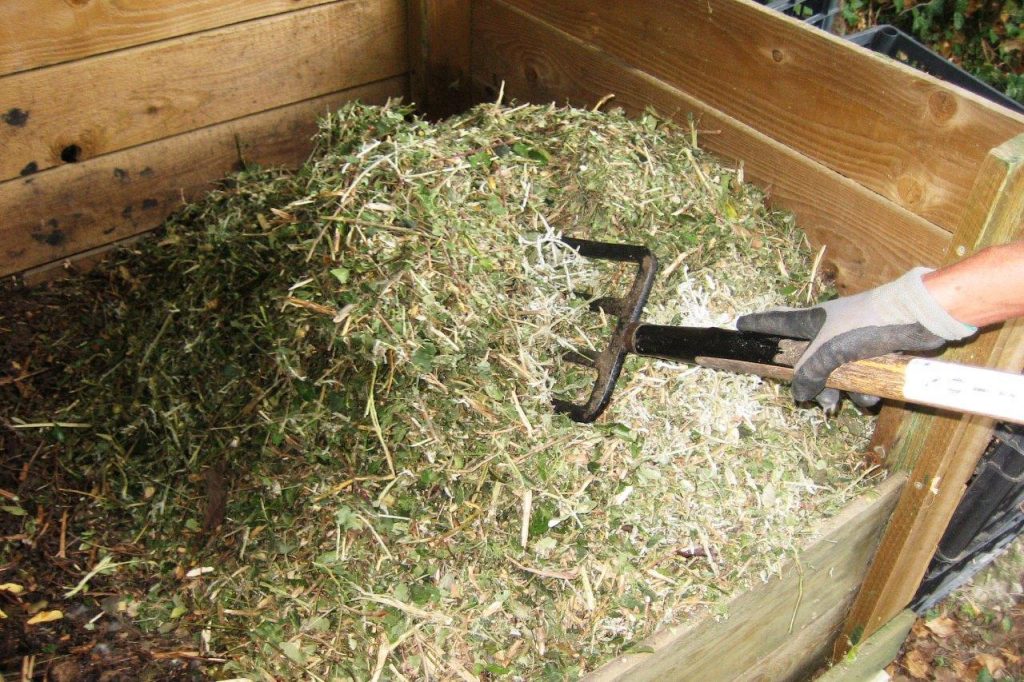 Par temps chaud, je retourne le mélange au bout de deux semaines, en hiver, cela peut prendre un peu plus de temps. Le cœur du compost devient très chaud et le fait de remettre au centre les matériaux qui se trouvent au bord donne un compostage plus régulier. En été, le compost doit être arrosé de temps en temps afin de garder une certaine humidité et sera prêt au bout de trois mois. En hiver, cela prendra deux fois plus de temps.