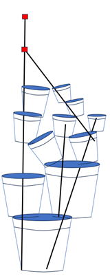 As the pot tree gets higher, it might be necessary to attach the main supporting rod to the wall, using the anchor that you placed in Step 3. This helps keep the tree stable as you select your next pot and plan your next move. Do not attach the main rod in a permanent manner as you might want to slide another pot into it.
