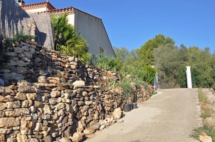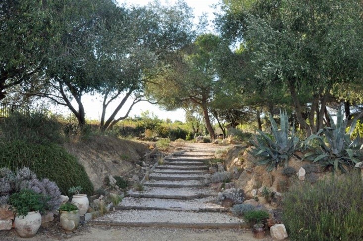 - Use recycled stones to create a setting of low walls and stone paths (calades) and encourage biodiversity.