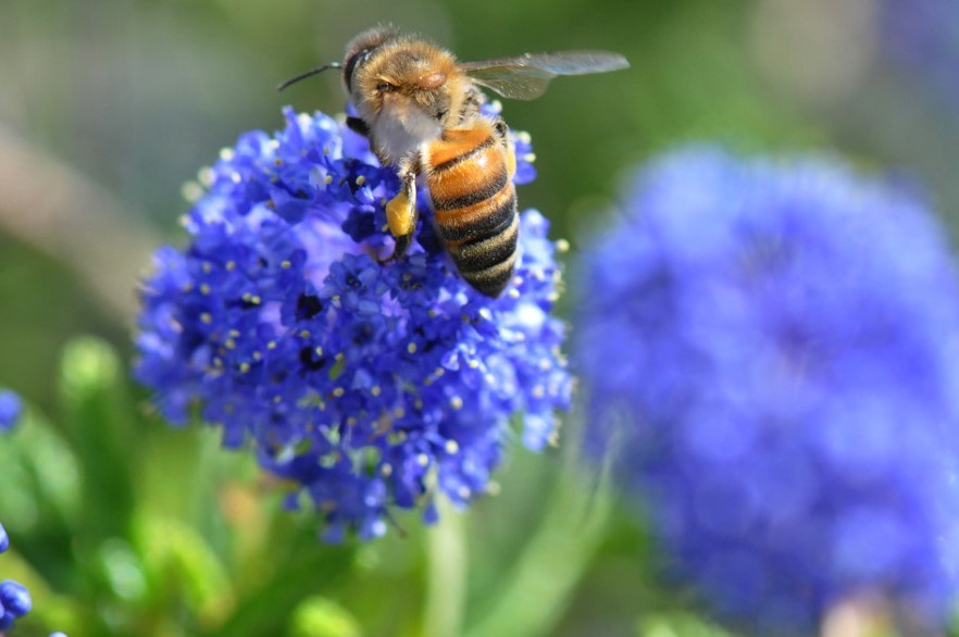 Ce qui nous a le plus ravi, c’est la prolifération massive des insectes en deux ans. La végétalisation du jardin sans appliquer de traitement chimique et le maintien d’une partie en végétation sauvage a sans doute permis cette revitalisation de notre espace. Les butineurs sont là, en voici un sur un céanothe.
