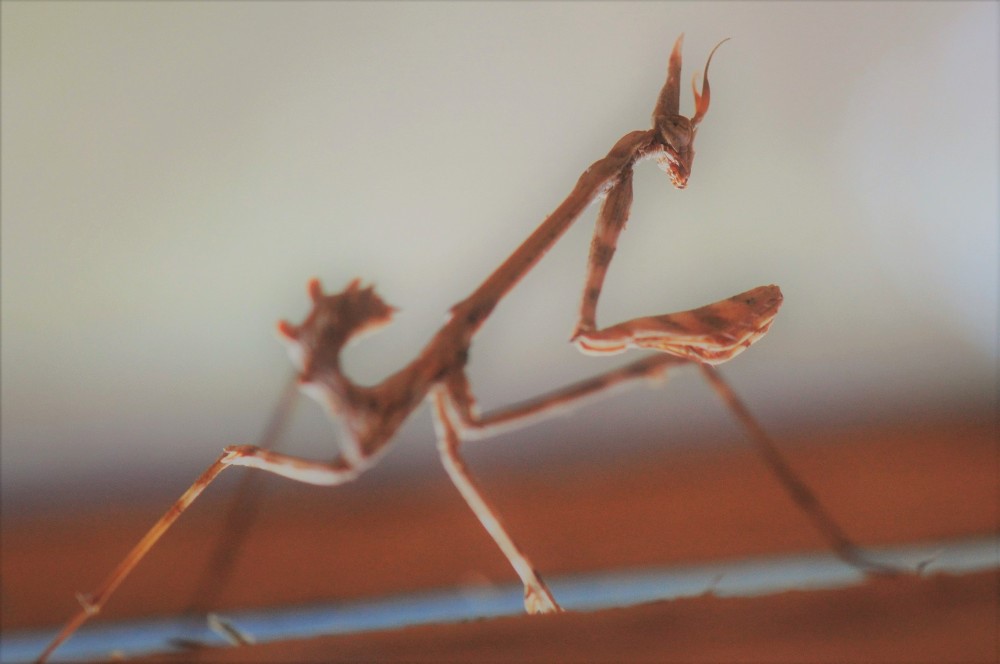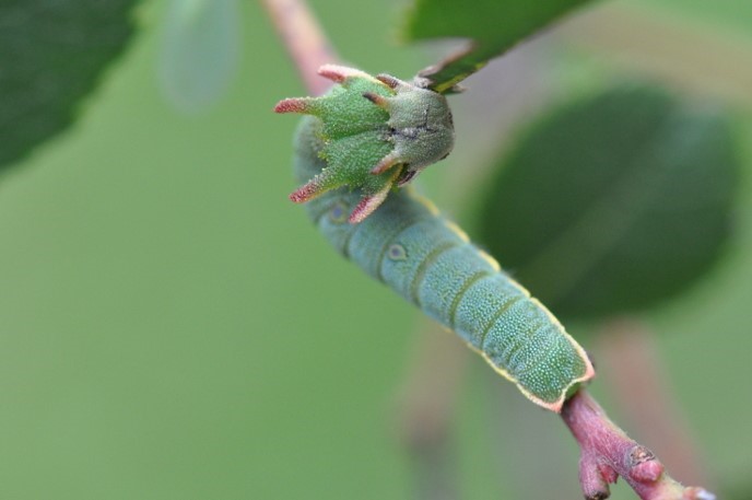 Other weird insects fascinated us. This young mantis, Empusa pennata, a scary-looking creature known as the devil of Provence, had sought refuge in the greenhouse where it found small flies and other insects as food. And look at the beauty of this Two-tailed pasha caterpillar, Charaxes jasius.