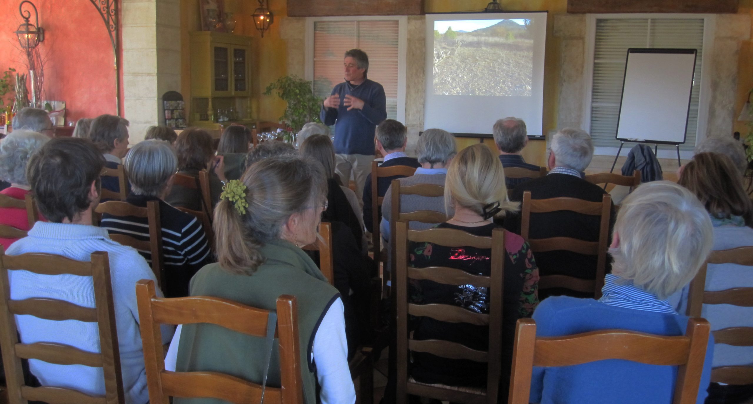Christian Mistre de la Pépinière La Soldanelle était un choix idéal d’intervenant sur ce sujet difficile, puisqu’il se spécialise dans les plantes qui toléreront les conditions assez extrêmes de sa pépinière, avec des températures estivales de 40°C tombant à -8 voire -12°C en l’hiver, sans oublier le mistral.