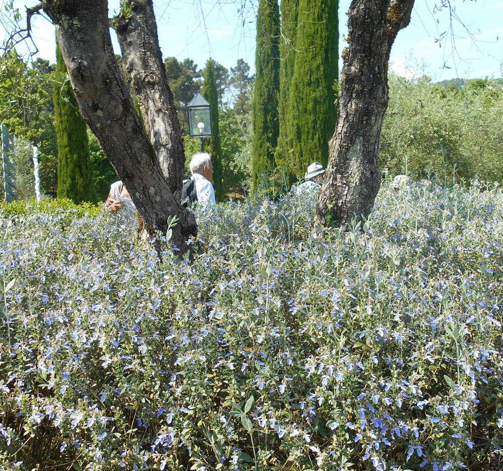 You want to plant a hedge, but you’re fed up with box, Viburnum tinus and all the other old warhorses. So why not try a hedge of Teucrium fruticans? This very versatile shrub can be clipped, has silver leaves and blue flowers, and forms neat and beautiful dividing hedges. Another good hedging plant spotted on our tour: Phlomis russeliana. Both plants are extremely drought-tolerant. They can also be used to very good effect to surround olive trees.