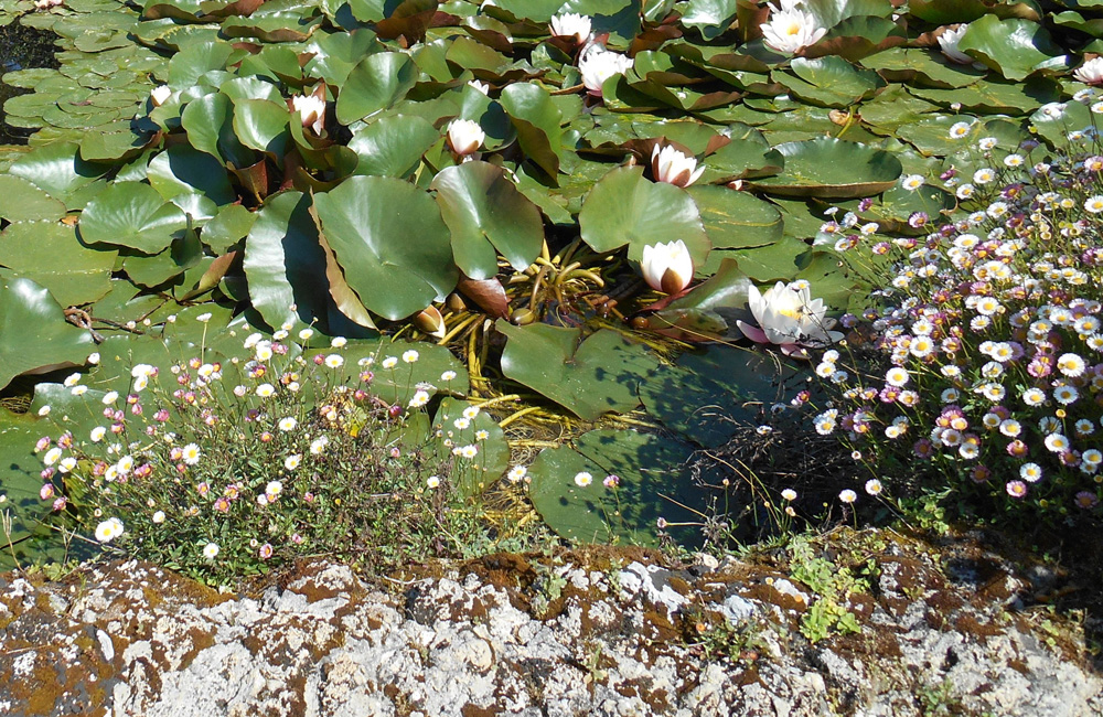 Erigeron at edge of pool / Vergerette au bord d’une mare