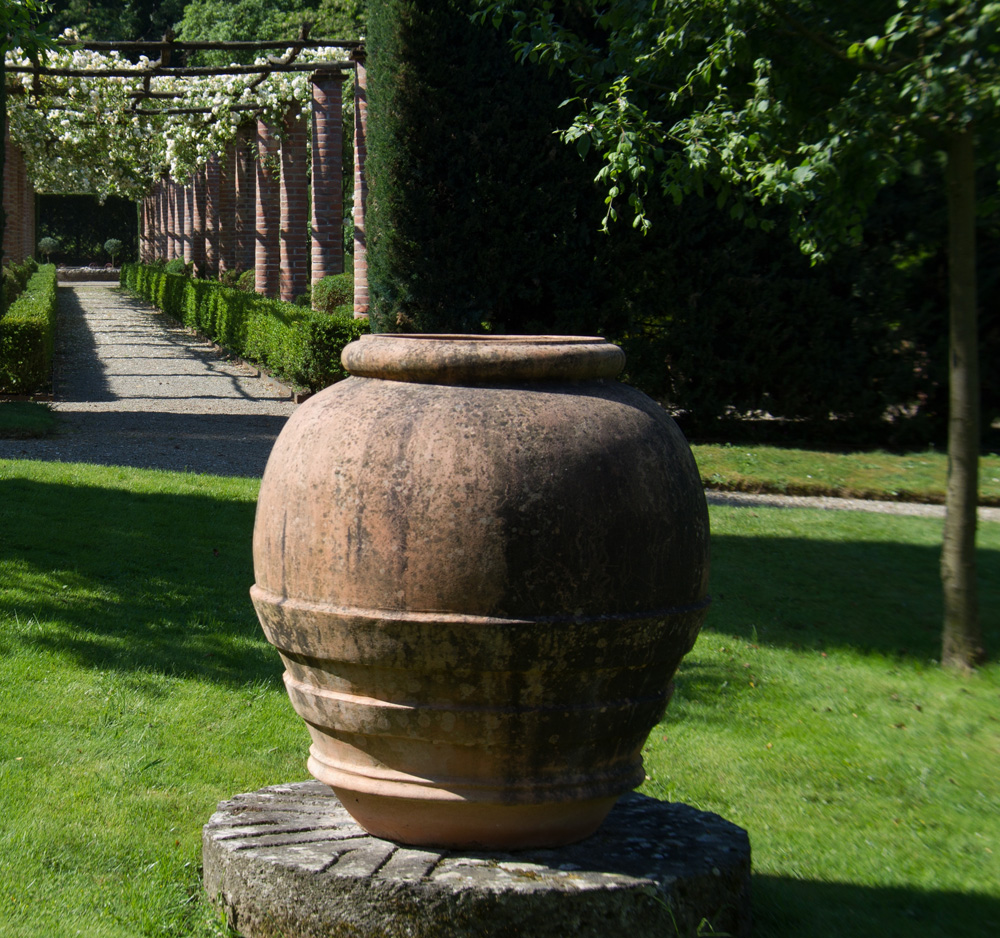 I think the Italians must be the champions of growing plants in pots. They’ll grow anything in any kind of pot anywhere, even outside the window of an apartment in the city. We saw so many inspiring examples, it’s difficult to choose just a few. But the most effective examples used flowering plants of only one variety and colour in a densely-packed display. Or, to be different, don’t plant your pot up at all! A huge pot standing by itself can be extremely beautiful. And if you prefer something more humble and easy to obtain, a straight row of empty pots is a very effective feature.