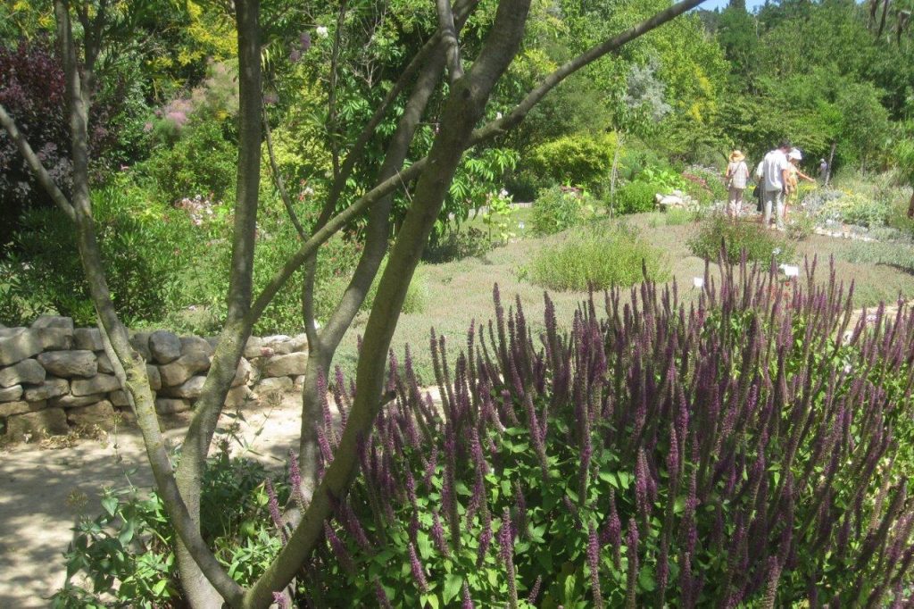 The Medieval Garden has a ‘Hortulus’, a list of plants whose uses were known in antiquity, and more recently used by those local heroes, the Cathars. The ethno-botanic collection includes Anthemis tinctoria, whose roots are used for dye and Bituminaria bituminosa, or pitch trefoil, used as an infusion to counter epilepsy, hysteria and snake bites! Here we found borders devoted to oregano and thymes including a lavender scented variety, Thymus thracicus and a delightful mint border with some rather unusual ‘flavours’, for example, banana, Mojito, Chartreuse and Hemingway, a particularly fruity number….