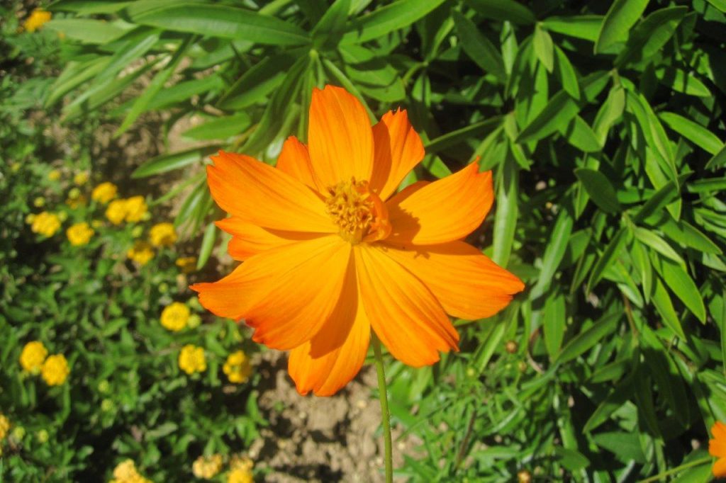 Other beauties were Cosmos sulphureus, with its bright orange flower, the bold Hesperaloe parviflora, the red yucca, which is robustly cold tolerant despite its tropical good looks and the triffid-like Helianthus salicifolius.