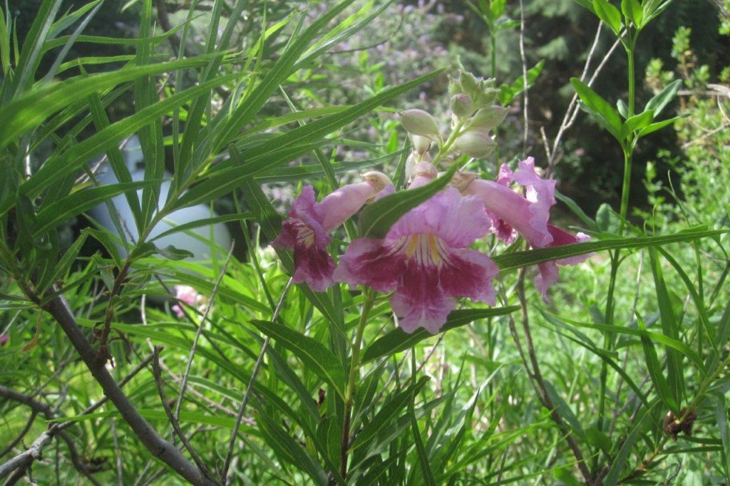 It was looking great, and we much admired her beautiful trees and shrubs, including the gorgeous Chilopsis linearis, several varieties of hibiscus and Heteromeles salicifolia (syn. H. arbutifolia) a California native but relatively robust.