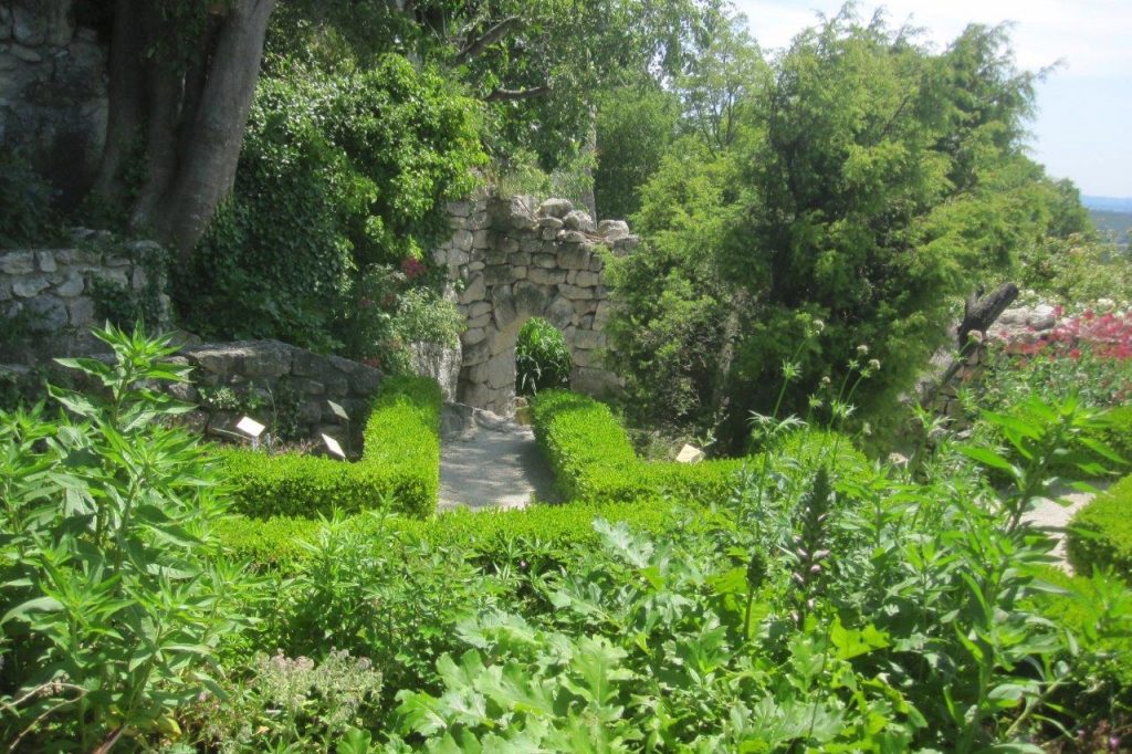 The garden is divided into two distinct sections. The first is a garden of medicinal plants grouped by reference to their usage. The second section comprises aromatic plants including salvia, lavender and geranium. The view from the garden across the Rhône valley is quite spectacular.
