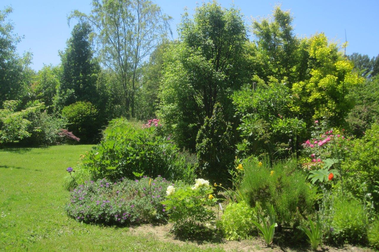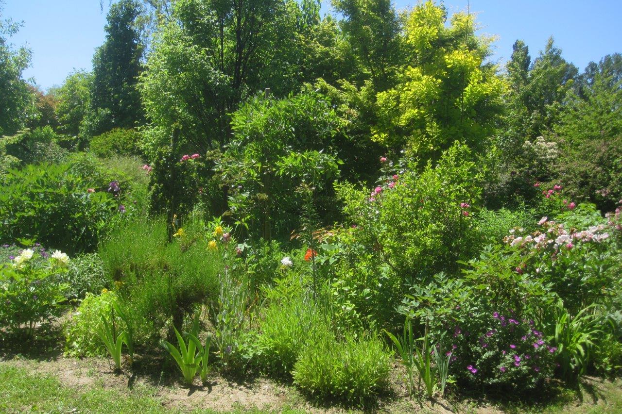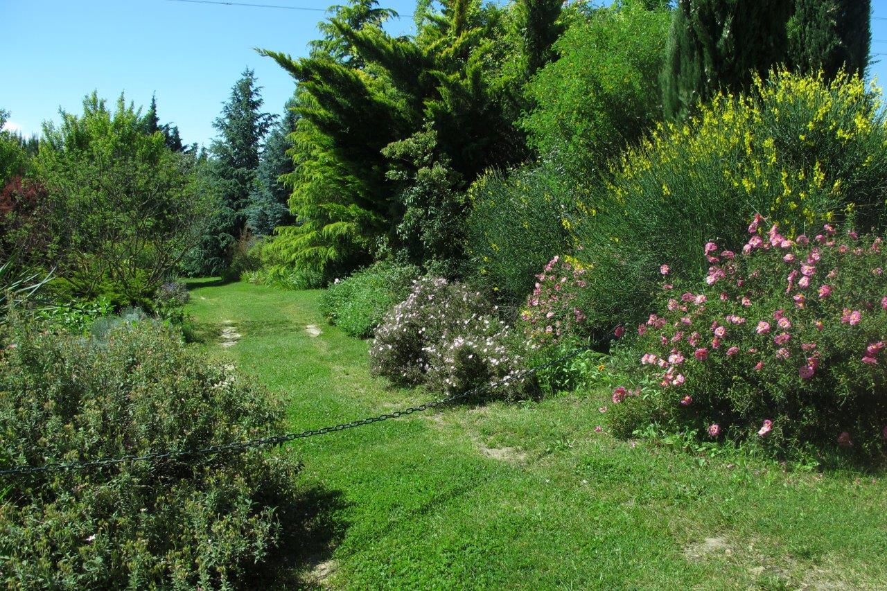 The site is a former agricultural field of just over a hectare on quite poor soil, though with a high water table, particularly at the lower end. It was planned and planted by the enthusiastic Mme Amoretti and her husband. The couple live in Valence about 14km away and the only building in the garden is a restored stone cabanon used for storing garden equipment. From nothing but an open field, which originally grew tobacco at the lower end and later wheat, they have created a beautiful park.
