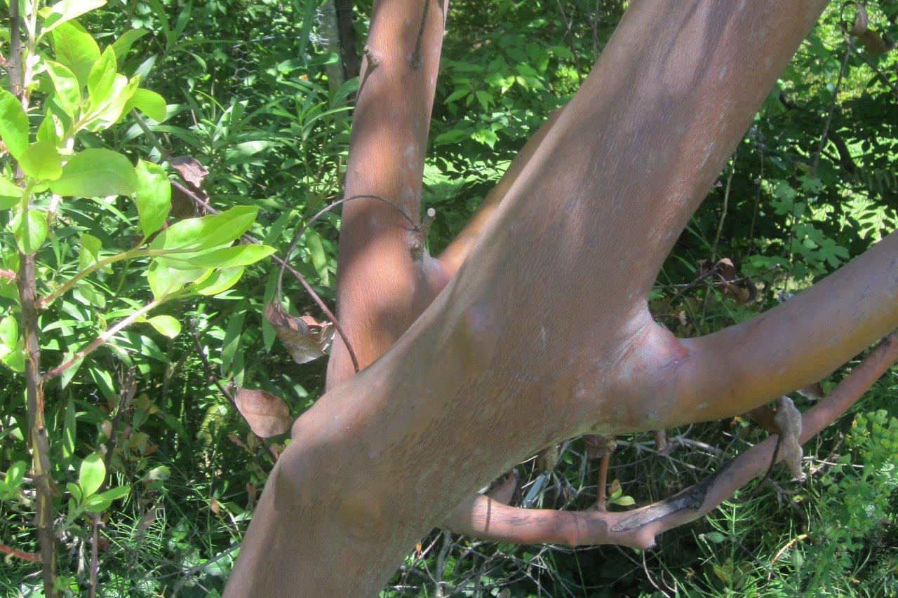 Annie seemed particularly pleased with a Japanese cherry Prunus cerasusyedoensis, grafted onto a stock at ground level by a German specialist. She also drew our attention to Arbutus menziensii, from California, which sheds its rust-coloured bark each year to leave a pistachio-green under-layer.
