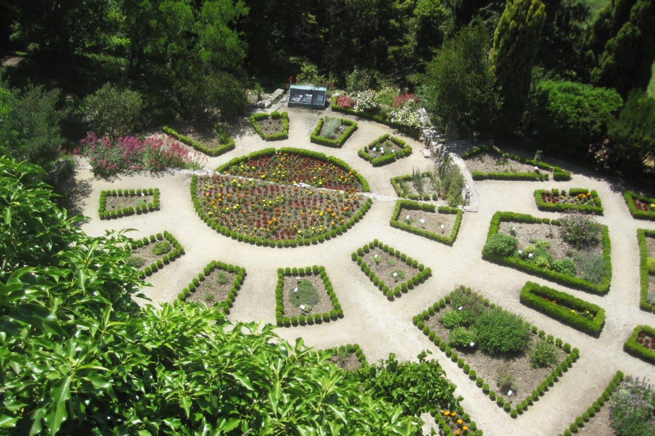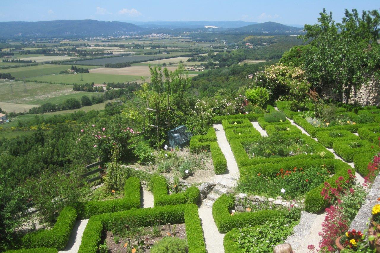 The garden is divided into two distinct sections. The first is a garden of medicinal plants grouped by reference to their usage. The second section comprises aromatic plants including salvia, lavender and geranium. The view from the garden across the Rhône valley is quite spectacular.