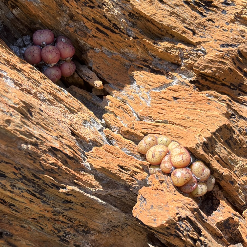 Les pentes rocheuses abritaient également une grande variété de plantes succulentes. Certaines, comme les haworthias, se trouvaient nichées sous des arbustes, connus sous le nom de plantes « nourrices », car elles fournissent une ombre protectrice aux petites plantes situées en dessous. D’autres plantes succulentes, comme Conophytum ficiforme, connue localement sous le nom de « orteils de bébé », se plaisaient en plein soleil.