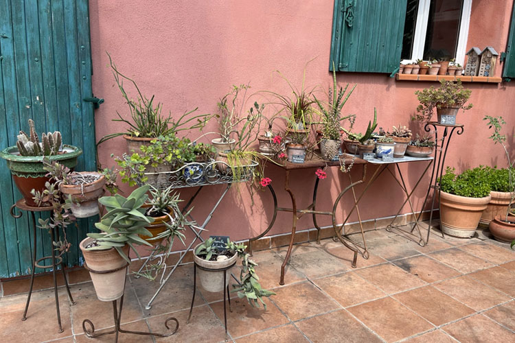 Plusieurs parties sont à découvrir dans ce terrain baigné de soleil : le jardin à l’italienne, les terrasses de cactées, le coin piscine avec de nombreuses poteries d’agrumes et une partie mixant des végétaux exotiques et de garrigue.