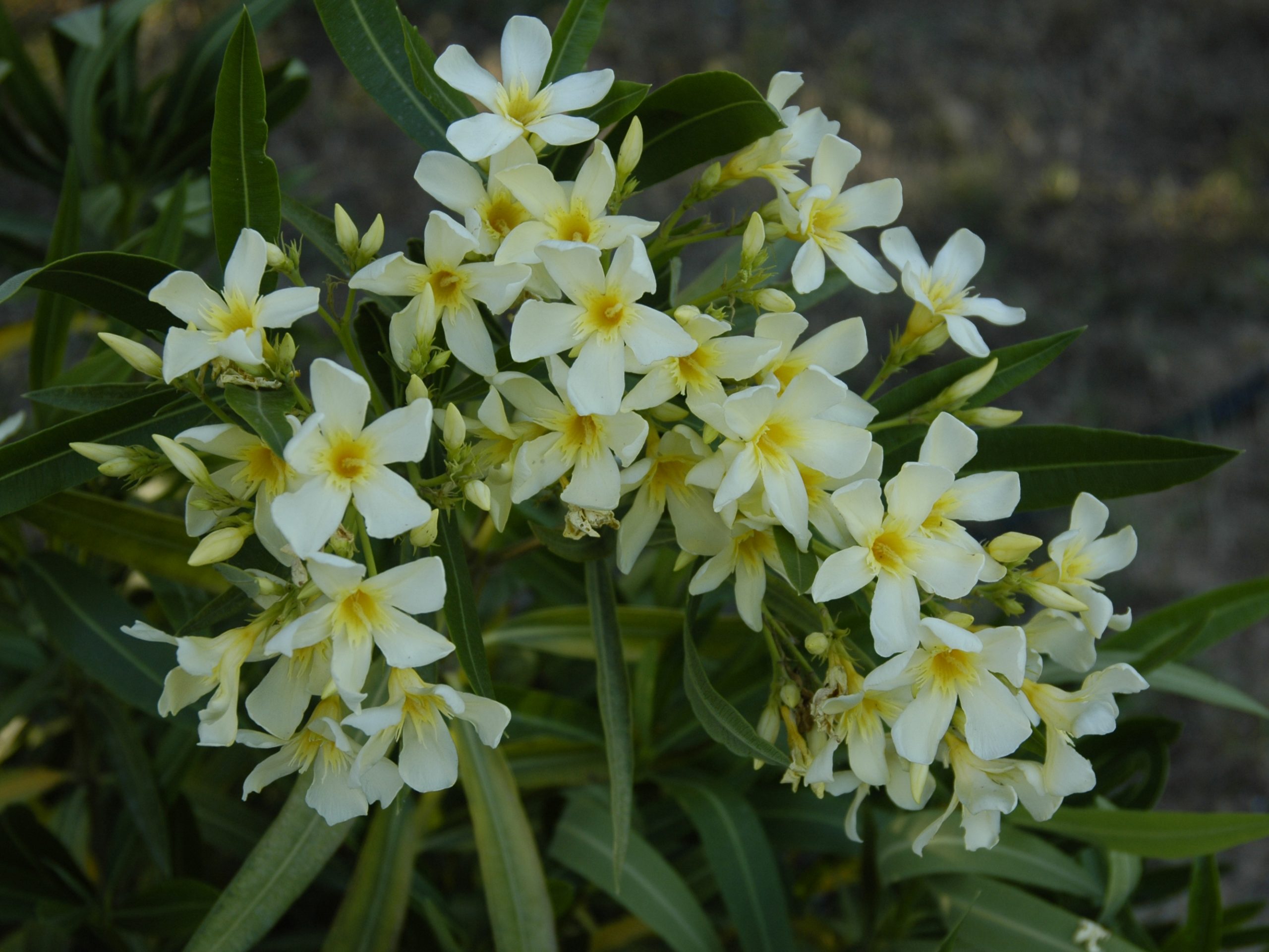Laurier rose. Cultivars with white, pink, yellow or red flowers.