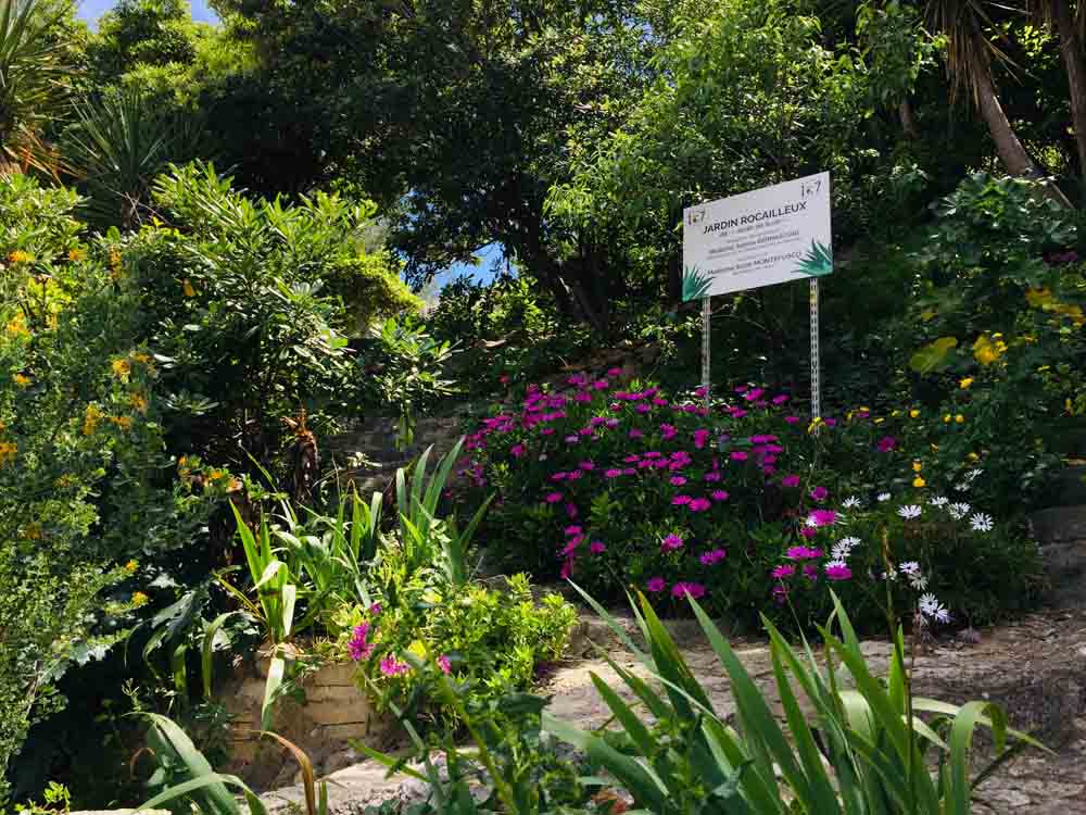 Vegetation seems to flourish in the sheltered situation of the Vallon. Just a few dozen metres from the water’s edge there’s an unusual public garden clinging precipitously to the side of a massive cliff. This is the aptly-named Jardin Rocailleux. Extremely steep paths lead upwards from the road, zig-zagging across the cliff face to culminate well above the roofs of nearby houses. Stout shoes and a good head for heights are required.