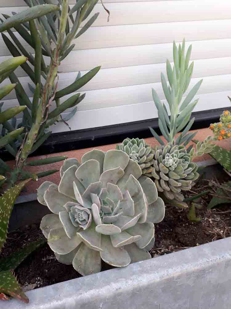Succulents flourish in the sheltered microclimate.