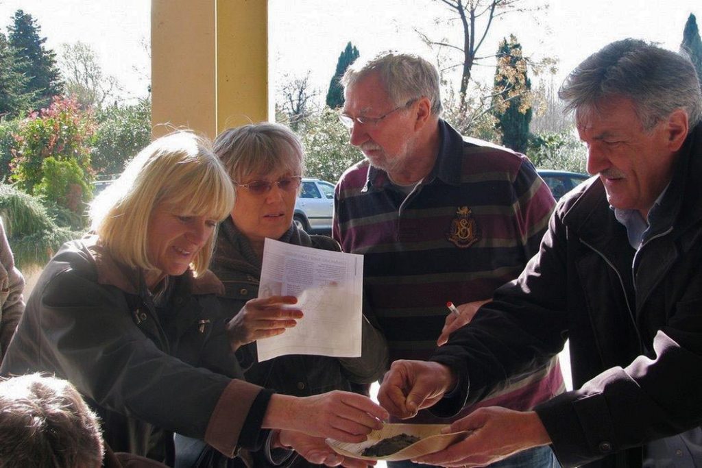 David explained the properties of each type of soil, then we carried out a number of different analyses of the soil we had brought from home. The great majority of those present had clay soils, some very fine indeed, others mixed with varying proportions of other elements such as organic matter or significantly sized rocks.