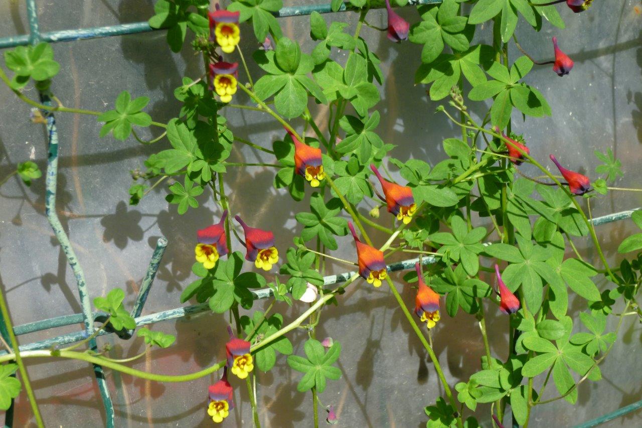 The shade tunnel houses the nursery’s most special bulbs including those from South Africa and South America. These include the bright red Anemone fulgens, Hesperantha cucullata, Hyacinthus orientalis, the large yellow Lachenalia aloides ‘Ronina’, the fragrant Muscari macrocarpum, Oxalis palmifrons and O. obtusa, the climber Tropaeolum tricolor, as well as dracunculus, freesia, moraea and ornithogalum. Growing in the ground was a huge clump of Chasmanthe bicolor. Next to the shade tunnel were rows of different narcissi.