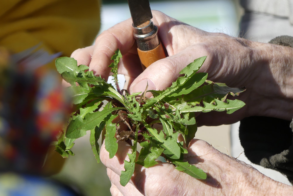 Armés seulement d’un couteau nous voilà le nez au sol en quête de petites touffes, rosettes ou inflorescences indiquant la présence de plantes comestibles. Surprise il y en a énormément, nous les piétinons sans même le savoir !