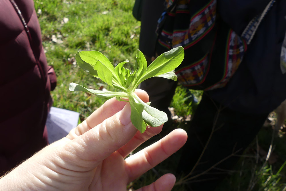 The group listened attentively to John’s explanations. For good plant identification always cross-check several structural criteria and observe the surrounding environment. When gathering perennials, pick only a few leaves to allow them to regrow. Pick in different places in order to avoid exhausting an environment. Wash the leaves you have gathered in white vinegar before consuming them.